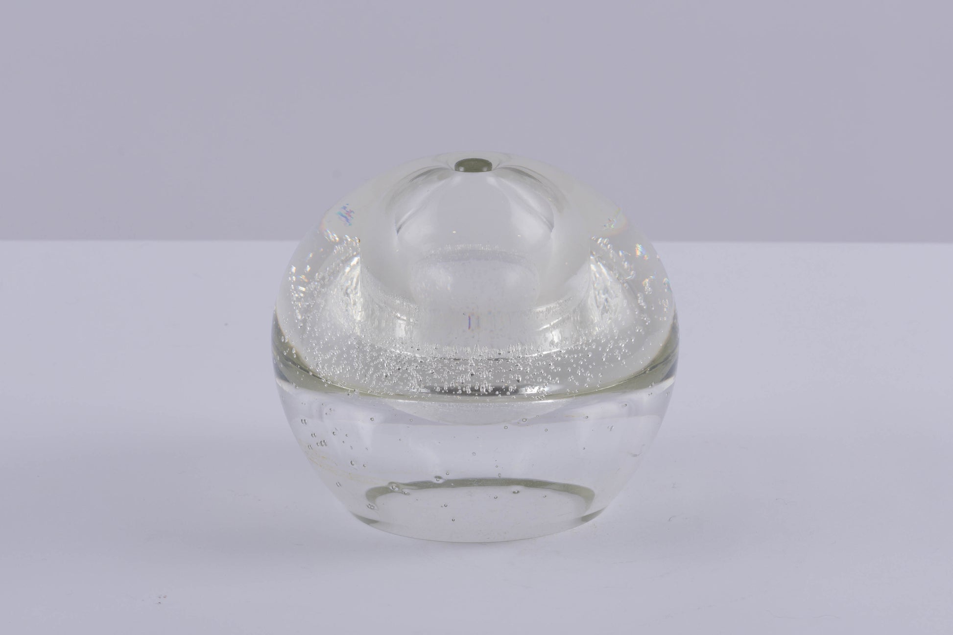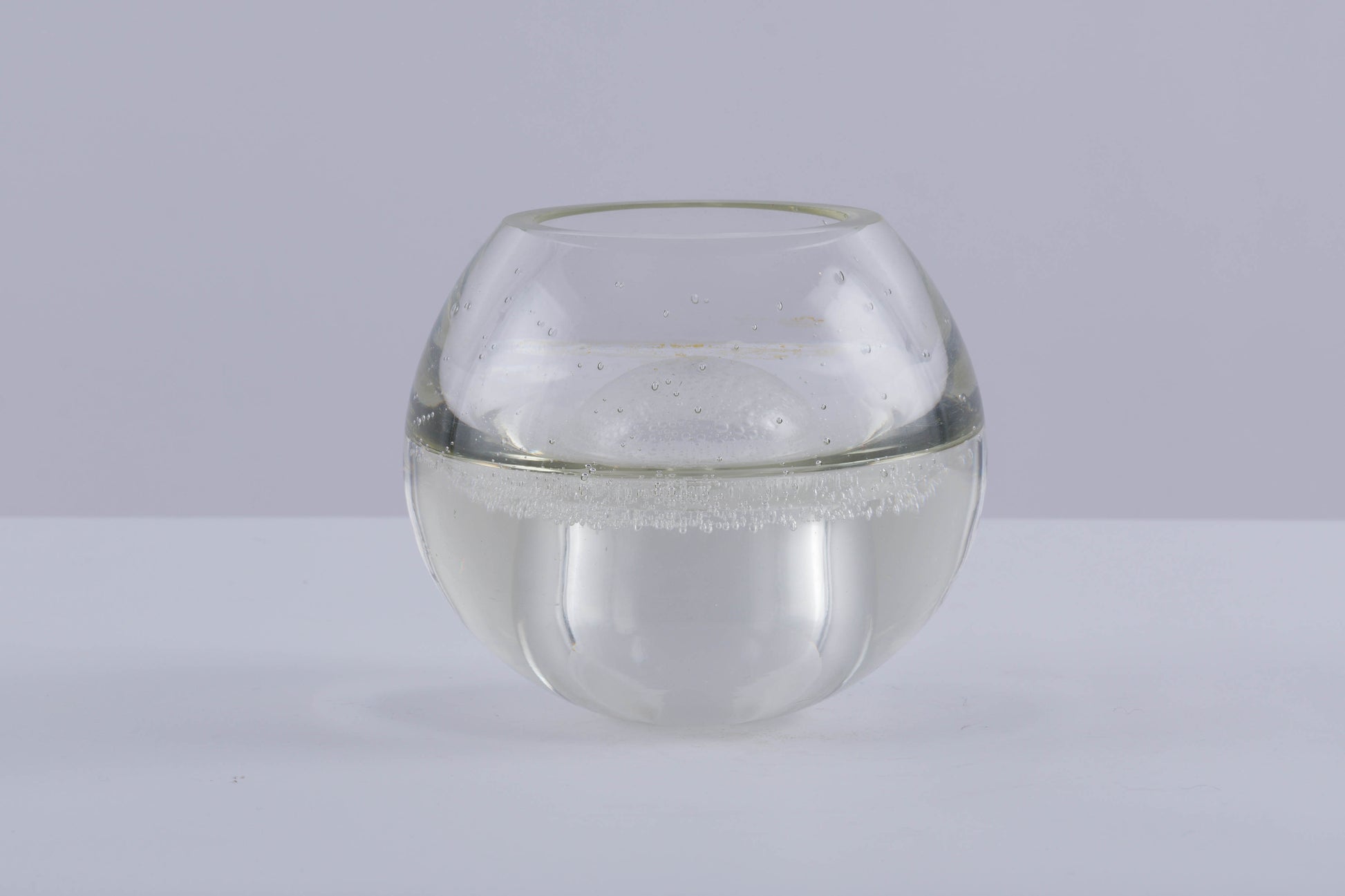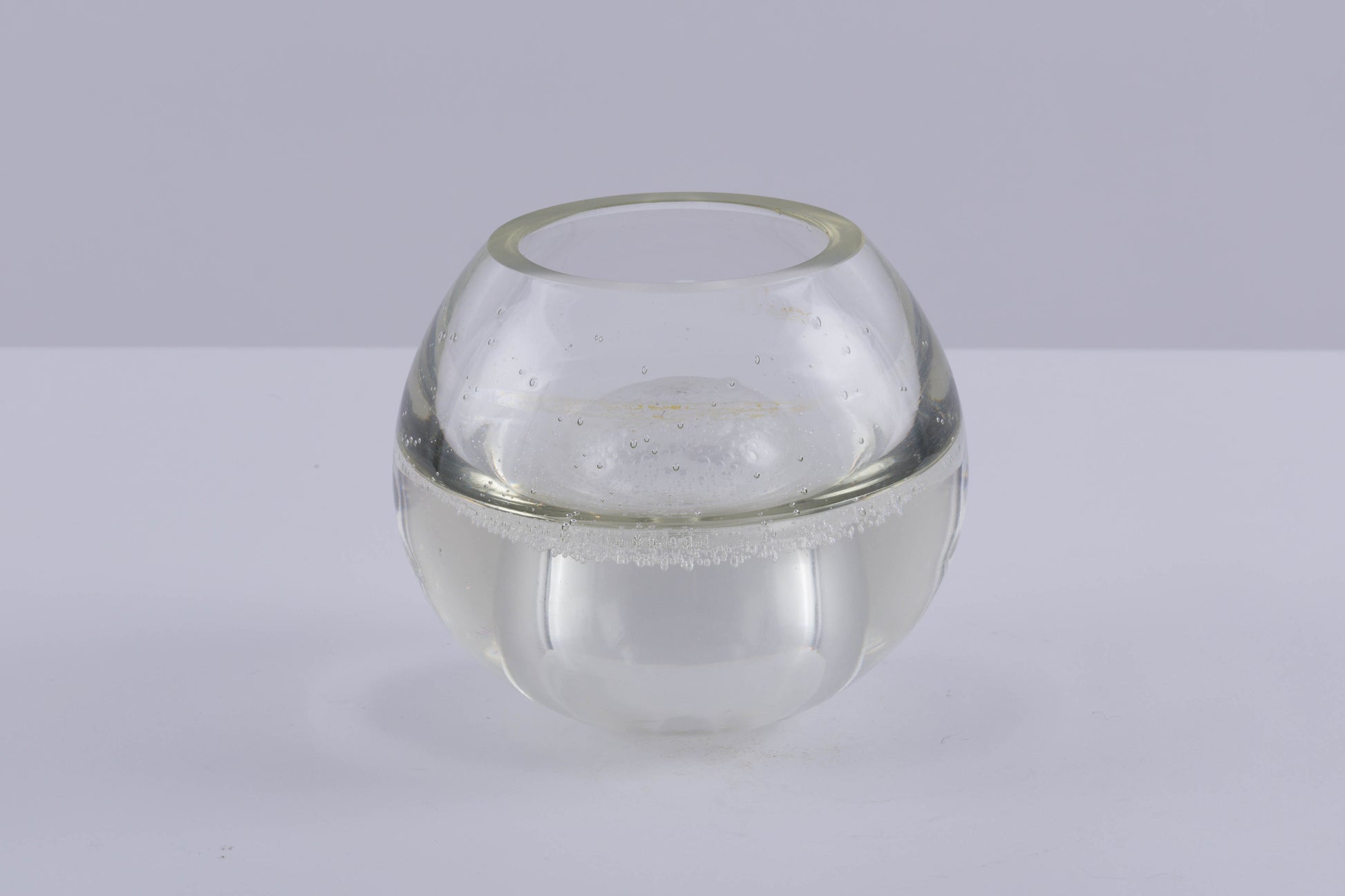 Handblown glass vase designed by A.D. Copier. This design has been termed 'Spijkerbol', for its small air bubbles that resemble holes which have been poked by nails.