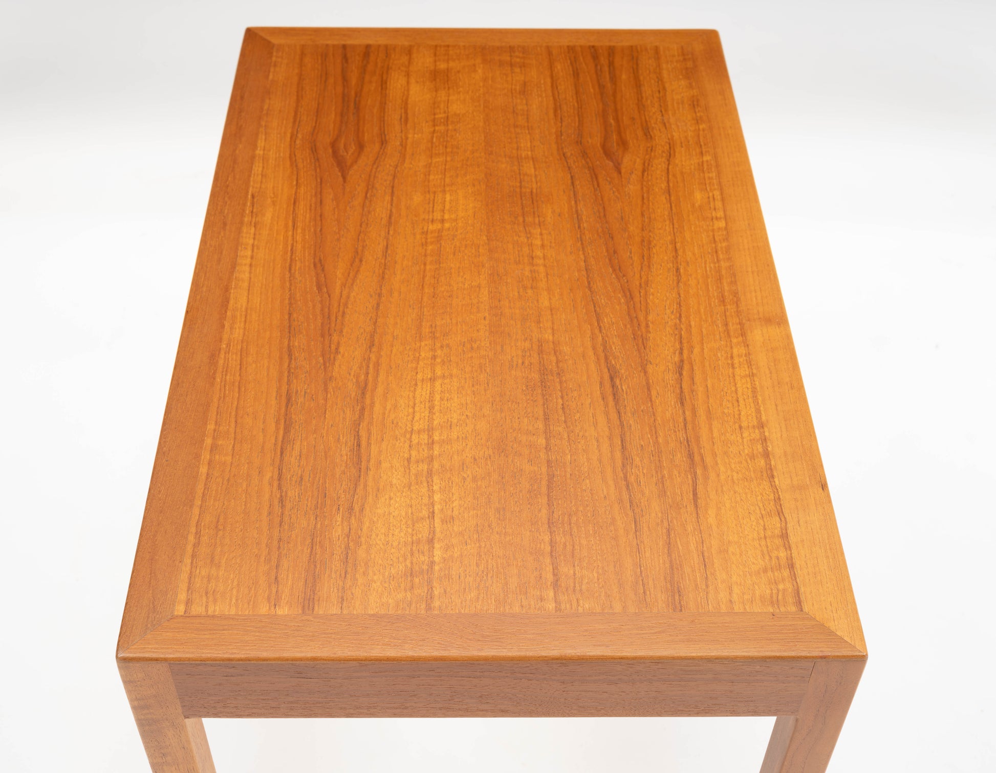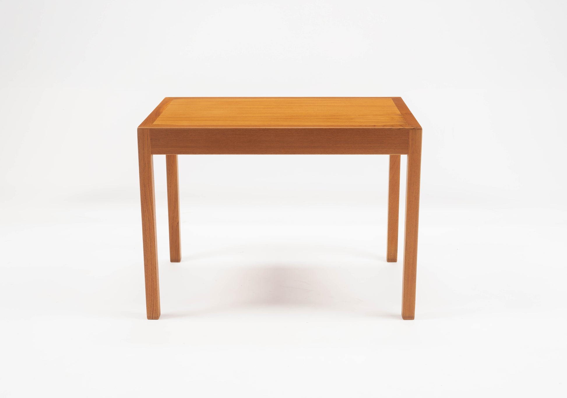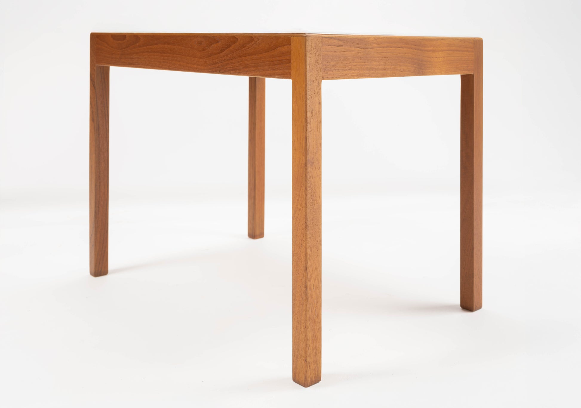 Beautiful Danish teak side table designed by the renowned Hans J. Wegner for Andreas Tuck. Its minimalist form and clean, understated lines give the piece an enduring, timeless appeal. The underside carries the original manufacturer’s stamp.