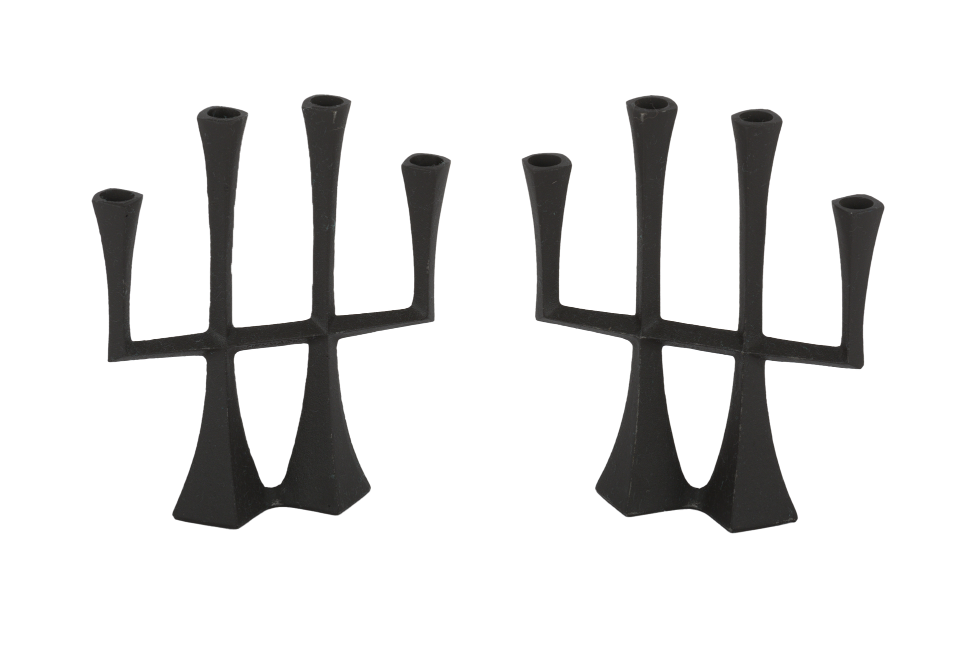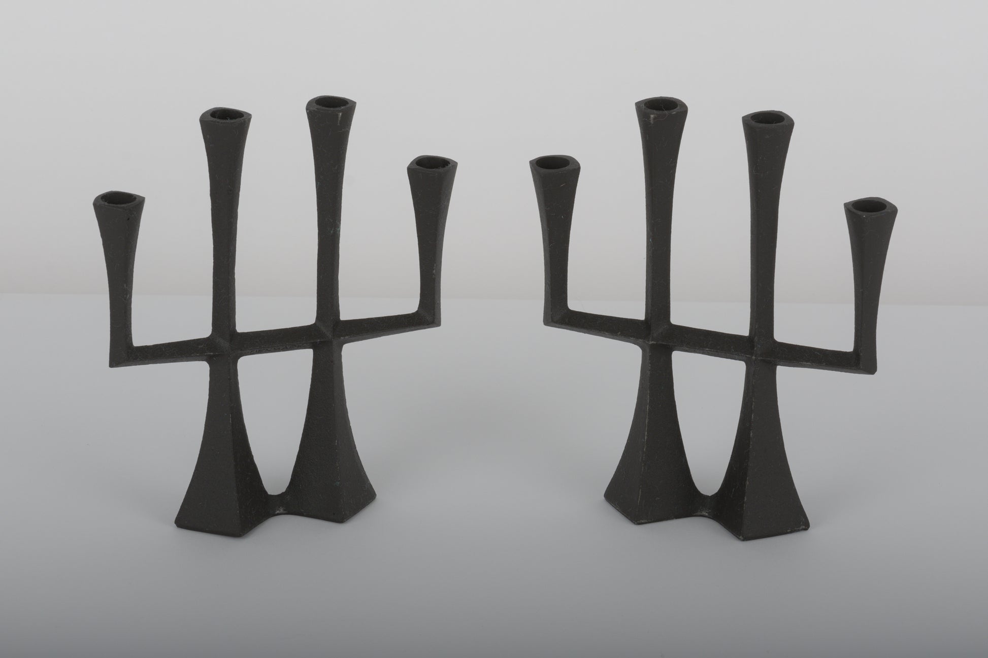 Pair of Jens Quistgaard for Dansk cast iron candleholders.