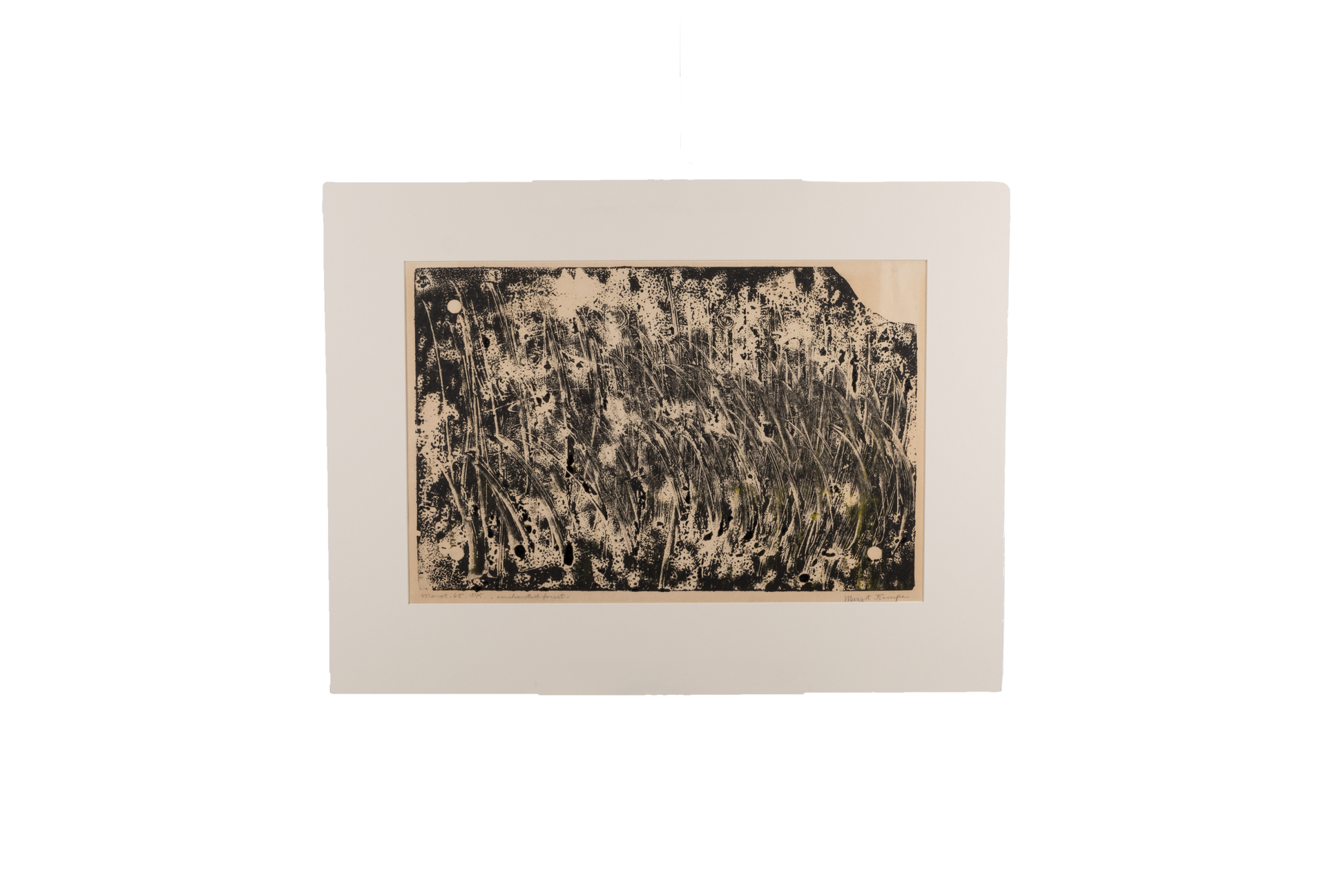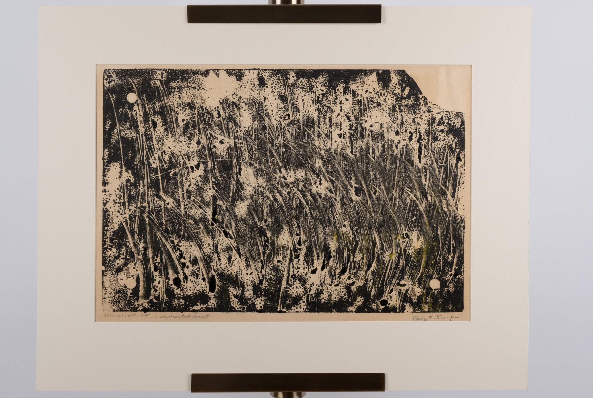 Margot Kempe print titled "Enchanted Forest." Signed and dated 65. May be a monotype print. Newly matted.