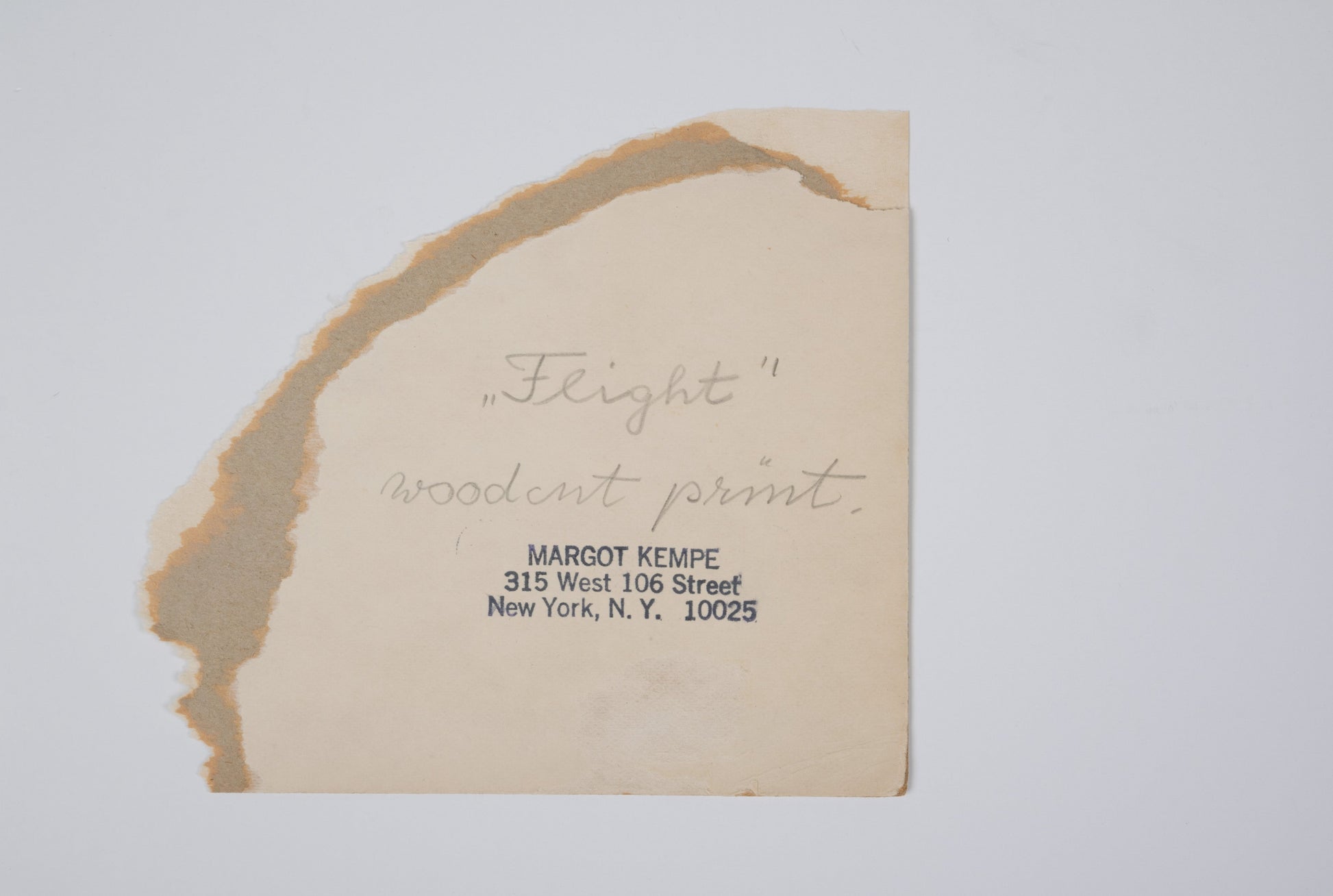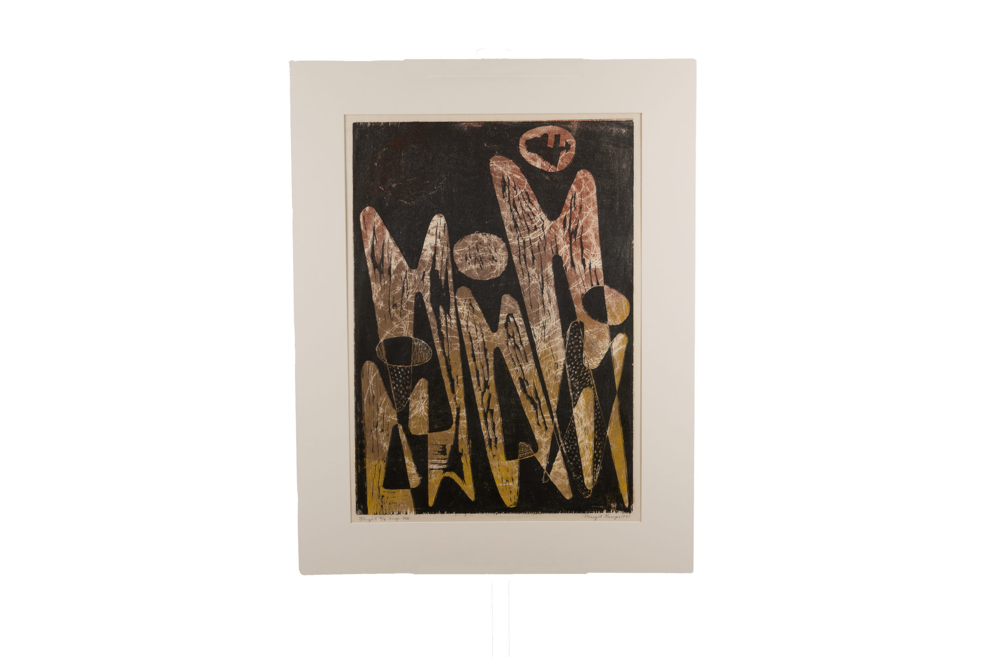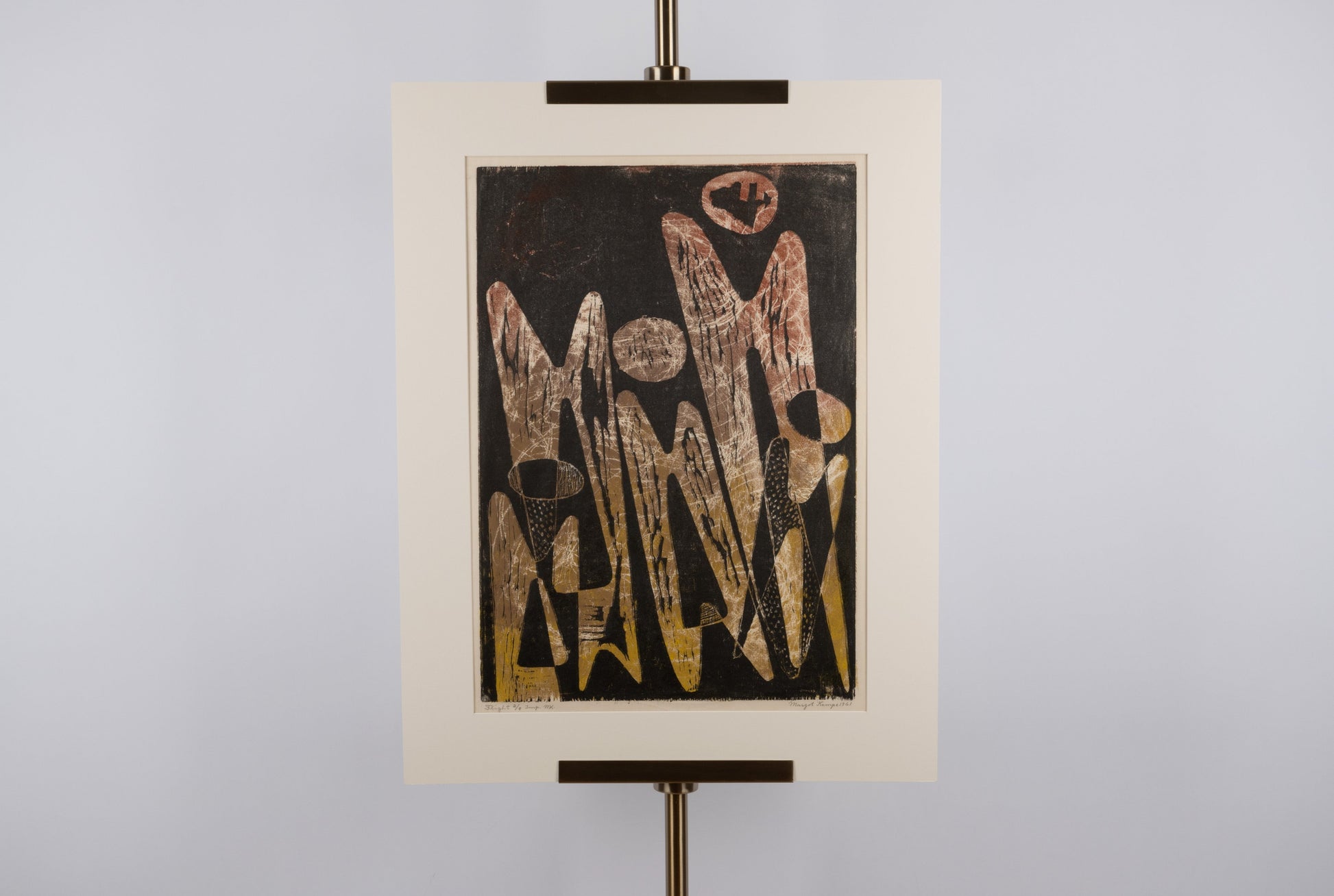 Margot Kempe print titled "Flight." Signed, dated 1961, Edition 3/8. Newly matted.