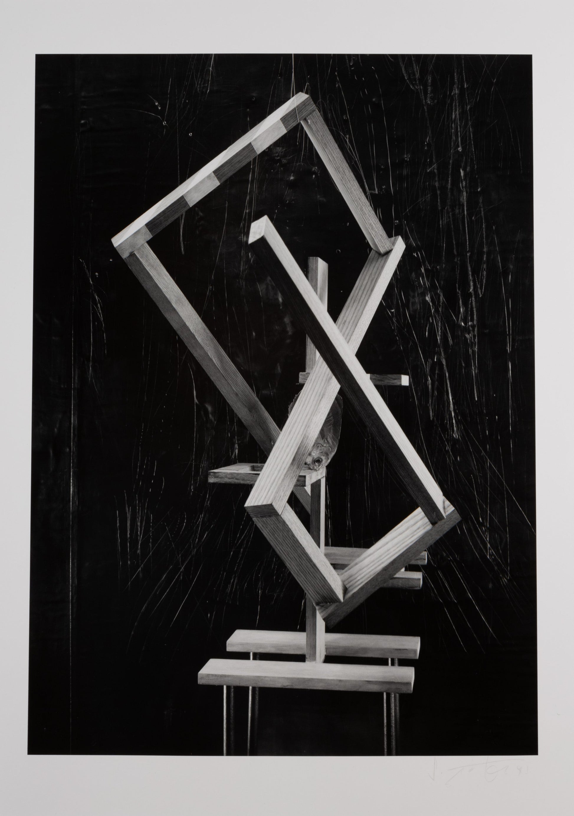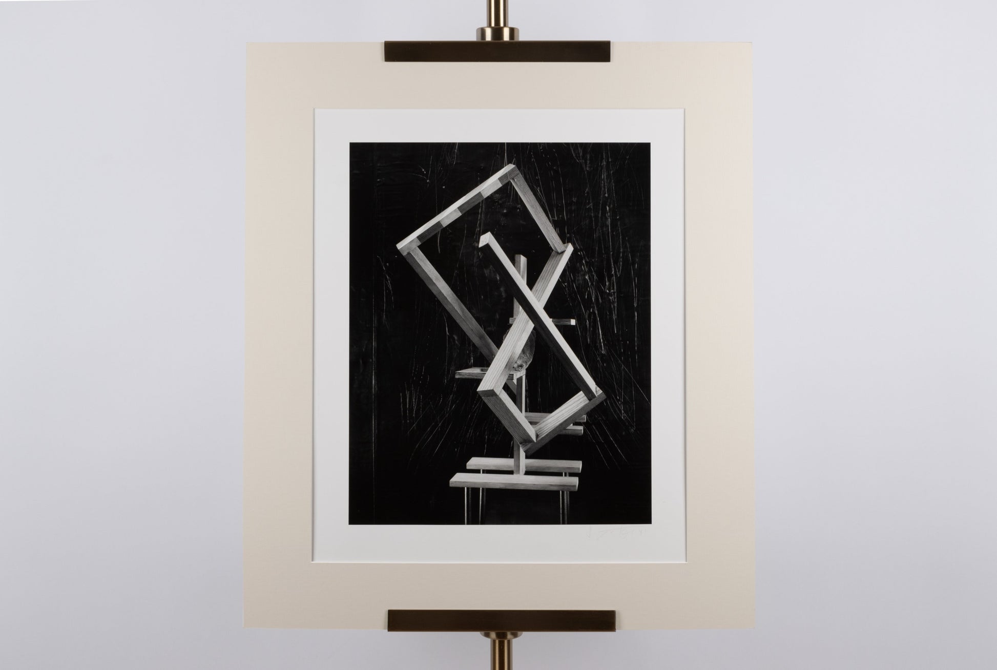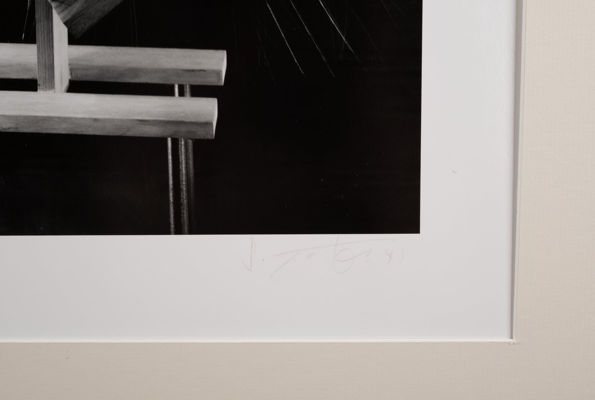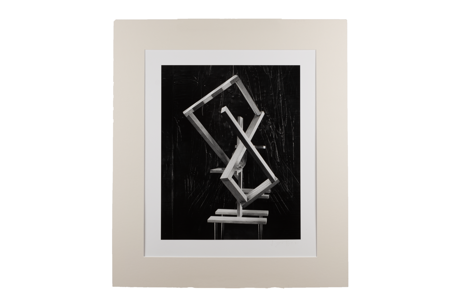 Black and white photo, featuring additional hand manipulation, and newly matted. Signed illegibly, and dated 91.