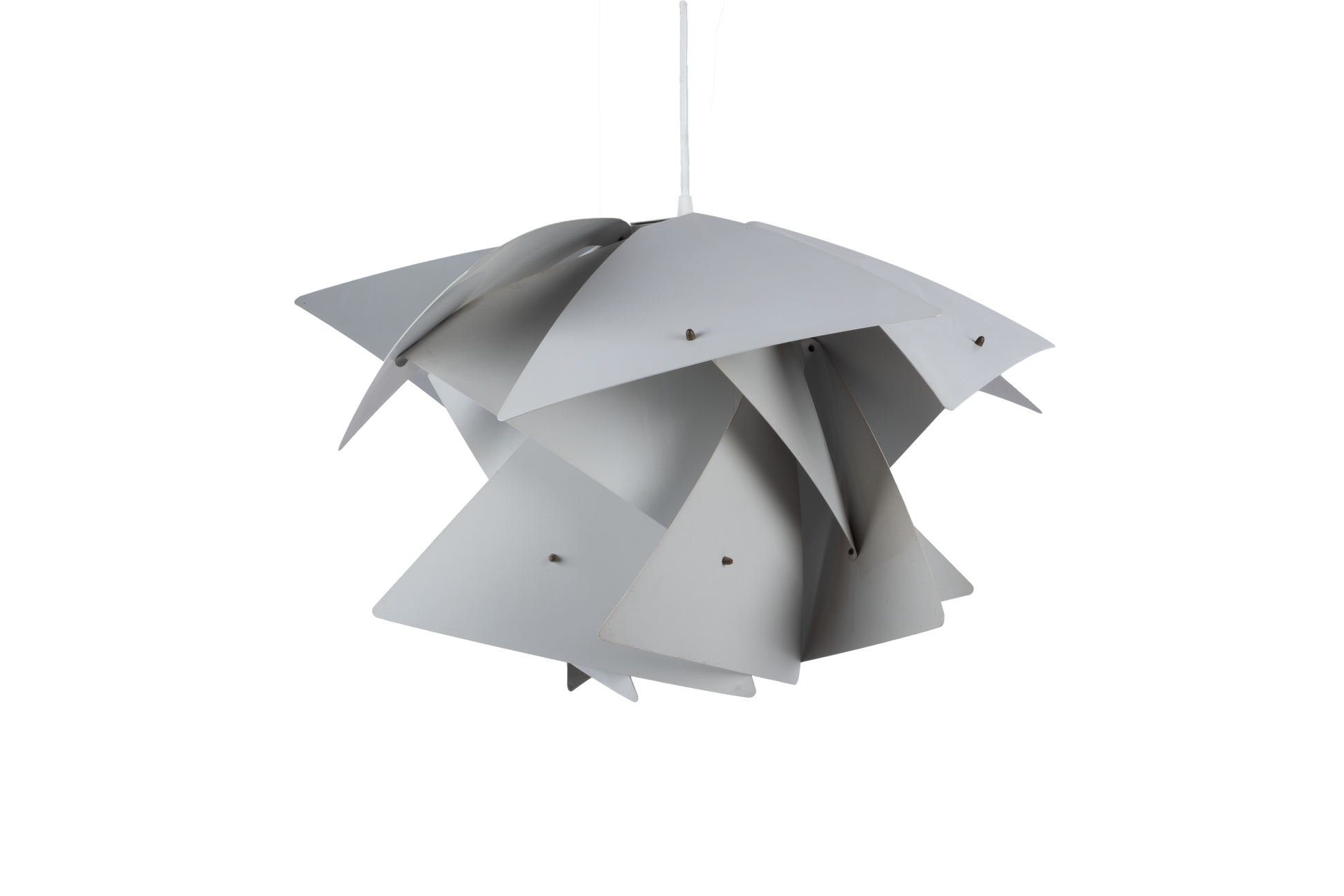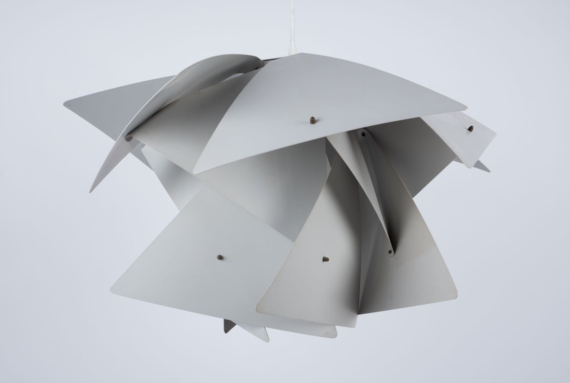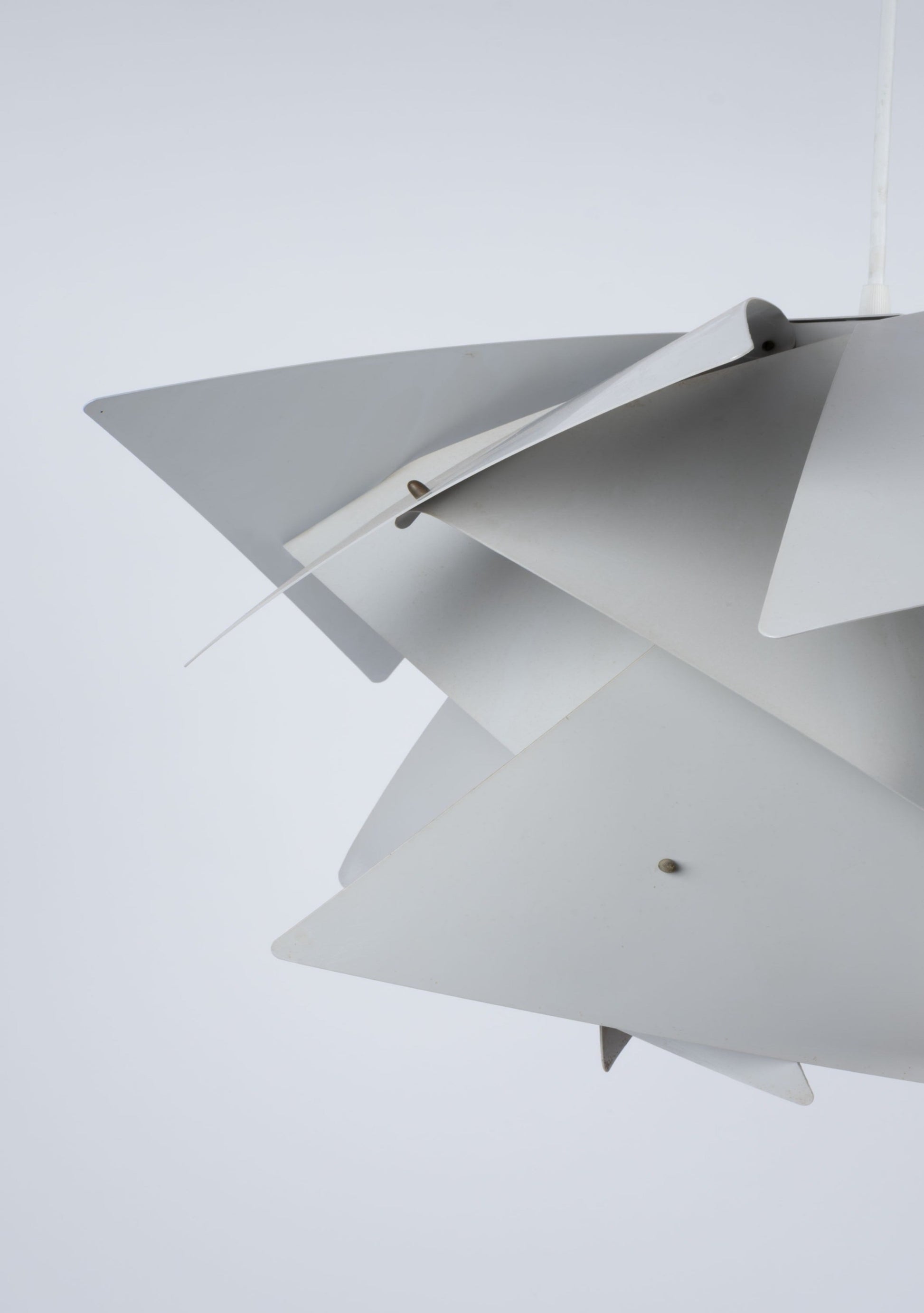 This is a rare example of Preben Dahl's Symfoni series pendant lamp created for Hans Folsgaard. It is visually as much sculpture as light fixture, truly stunning. Original condition. Manufacturer logo and made in Denmark stickers. Wire length: 7'+